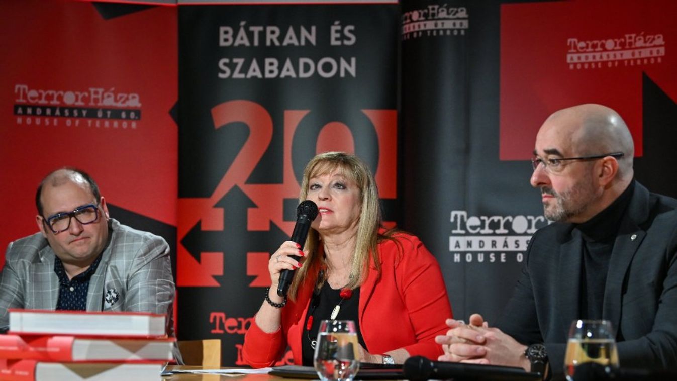 A vezető képen Schmidt Mária, a Terror Háza Múzeum főigazgatója, Kovács Zoltán nemzetközi kommunikációért és kapcsolatokért felelős államtitkár és Tallai Gábor, a Terror Háza Múzeum programigazgatója (Fotó: MTI/Illyés Tibor)