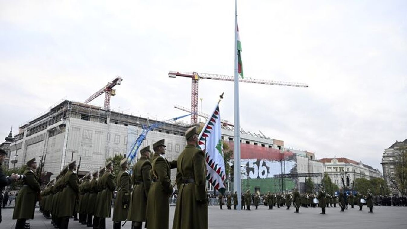 Felvonták a nemzeti lobogót az Országház előtt Forró drót október 23. Katonai tiszteletadással vonták fel a nemzeti lobogót az Országház előtt.