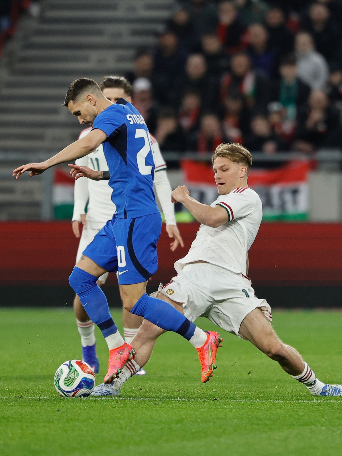 Részben talán ezért is, mindenesetre Marco Rossi kezdőcsapatában a fiatalítás ellenére sem volt olyan jelentős meglepetés. Amit láthattunk, hogy a Berlinből sérüléssel hazaérkező Dárdai Márton felépült, hiszen a kezdőbe jelölhette őt a kapitány, és először kapott szerepet a válogatottban kezdőként Vitális Milán is. Ami a szerkezetet illeti, gyakorlatilag 4-3-2-1-es felállásban kezdtünk, Varga távollétében Lukács volt a centerünk, Bárány Donát a padról várt bevetésre. A szlovénoknál a most debütáló szövetségi kapitány, Bostjan Cesar 4-4-2-es hadrendben küldte pályára övéit, a két „magyar” légiós, Zeljkovic és Matko a padon kezdett náluk.