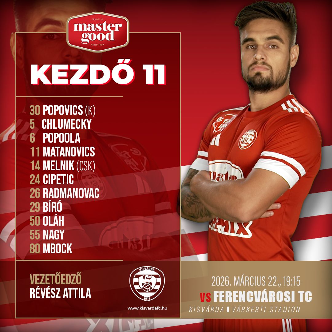 Kisvárda: Popovics – Cipetic, Radmanovac, Oláh, Chlumecky – Popoola, Mbock – Nagy K., Melnyik, Matanovic - Bíró. Vezetőedző: Révész Attila. Ferencváros: Dibusz – Gómez, Raemaekers, Szalai G. – Osváth, Kanikovszki, Madarász, Zachariassen, Nagy B. – Yusuf, Kovacevic. Vezetőedző: Robbie Keane.