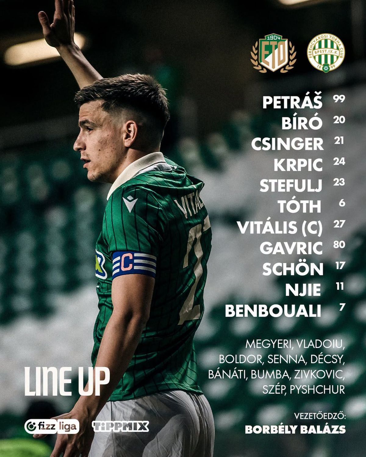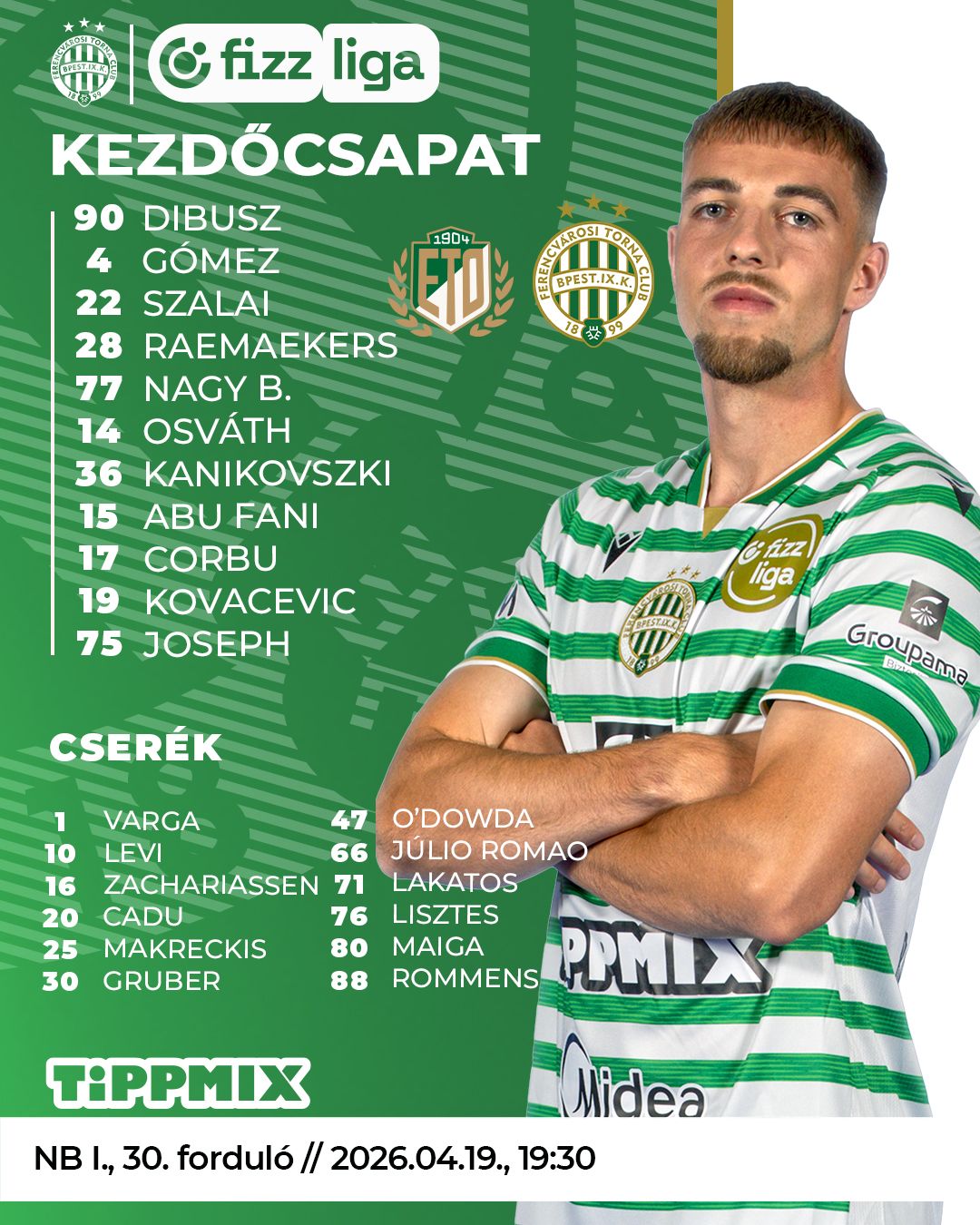 ETO: Petras – Bíró, Csinger, Krpics, Stefulj – Tóth, Vitális, Gavrics, Schön – Njie, Benbouali. Vezetőedző: Borbély Balázs. Ferencváros: Dibusz – Gómez, Raemaekers, Szalai G. – Osváth, Kanikovszki, Abu Fani, Corbu, Nagy B. – Kovacevic, Joseph. Vezetőedző: Robbie Keane.