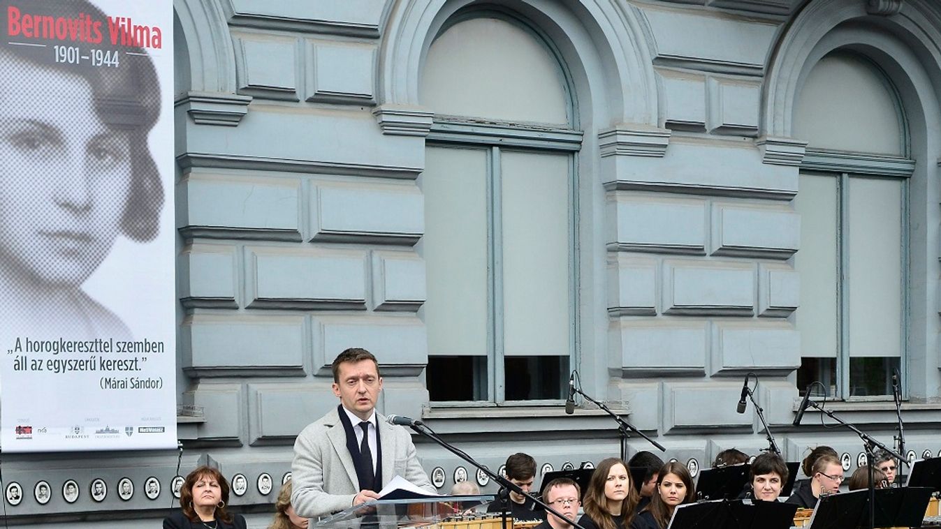 Schmidt Mária, a Terror Háza Múzeum főigazgatója köszöntőjében felidézte: tíz éve emlékeznek szabadtéri koncerttel a múzeum előtt a holokauszt áldozataira, évről évre közös emlékezéssel óvják a jelent és a jövőt. Az emlékezéssel válik el a lényeges a lényegtelentől, mert csak arra tudunk emlékezni, ami valóban megérint minket – mutatott rá. Kiemelte: megtörtént, aminek nem lett volna szabad, és a józanságot őrző közösségek mindig tudták, hogy ami történt, az tagadása mindannak, amire hazánk és Európa épül, és amire büszkék lehetünk. Schmidt Mária közölte: Magyarországon kimondtuk a bűnösök nevét, történelmi igazságot szolgáltattunk, de talán kevés figyelem jut azokra az életpályákra, amelyek követésre méltó példát adhatnak. Ilyen Bernovits Vilmáé, akinek erkölcsi tartása mindig irányt mutat, akire büszkék lehetünk – mondta.