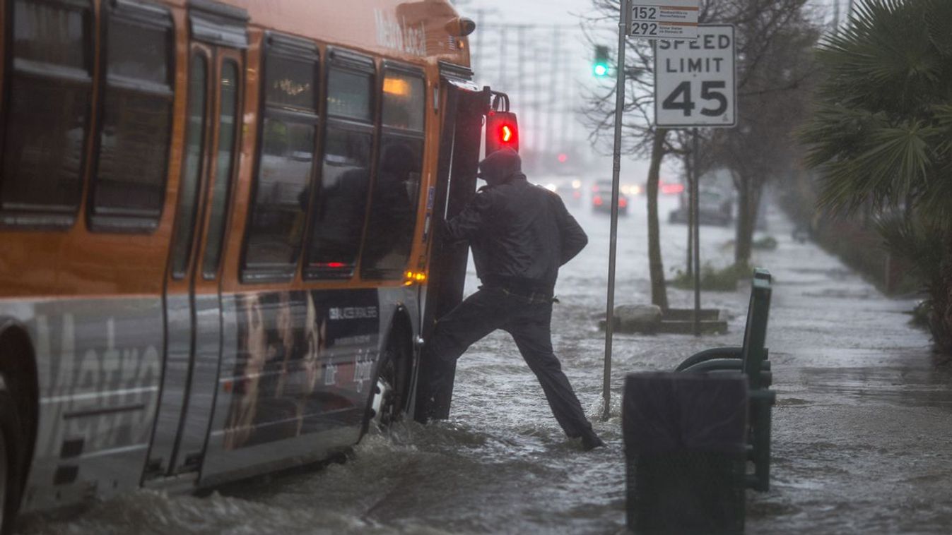 Los Angeles környékén az utak vízben állnak, járhatatlanok, sok helyütt megszűnt az áramszolgáltatás, a metropolisztól délre eső Santa Ana-völgyben és a hegyekben élőket önkéntes evakuálásra kérték a hatóságok.