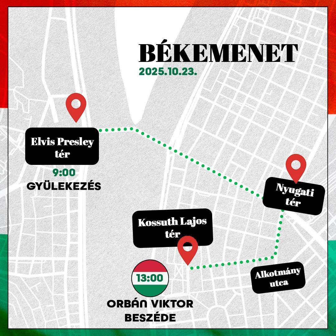 - a Békemenet gyülekezője kilenc órakor lesz a Margit híd budai hídfőjének közelében az Elvis Presley téren