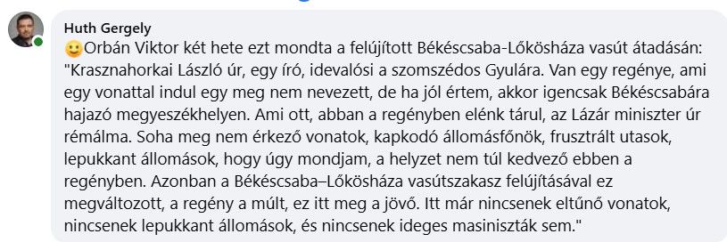 Krasznahorkai László irodalmi Nobel-díjat kapott, megérdemelten. Prózai stílusa egészen egyedi, végtelen, egymásba fonódó, sajátosan rezignált, melankolikus hangulatú mondatai kivételes tehetségről tanúskodnak. Fiatal felnőttként kifejezetten faltam a könyveit, azok közül is a Kegyelmi viszonyok és az Ellenállás melankóliája vált a kedvencemmé. E téren teljesen egy húron pendülünk öcsémmel, Gáborral. A jobbakat többször újraolvastam és olvasom. Azonban már Báró Wenckheim hazatér is szánalmasan erőltetett volt 2016-ban, mely regény hősei kb. a Norvég Civil Alap-botrány kedvezményezettjei, a főgonosz újhitler-hungaroputyin pedig már akkor is Orbán. De pl. a legutóbbi pikareszkjében, a Zsömle odavanban már annyira erőltetetten írta le a feudális Fidesz-kormány vízióját, hogy a végeredmény kifejezetten szórakoztató lett. (Kövér László itt egy titkos társaság párfogója, amely egy lepukkant félhajléktalan öregben felfedezi IV. Béla egyenes ági leszármazottját és terrorcselekmények révén királlyá akarják választani őt......) Sajnos a berlini levegő nagyon rosszat tett Krasznahorkainak, valóságos magyargyűlölővé vált. Alighanem ez sokat lendített a Nobel-díj odaítélésén. Nemrég például ezt nyilatkozta egy svéd lapnak: „Most Orbán és társai dicsőségesnek mondják a történelmünket. Ez több mint nevetséges. A magyar történelem csak vereségekből áll. (...) Trianon egy párizsi kastély volt, ahol a békeszerződést aláírták, semmi más. Ennyire műveletlenek ma az emberek. Ma Magyarországon már nincs remény. (...) Egy teli vasúti kocsiban elég, ha egy neonáci van.” Mindezek ellenére remélem, hogy Krasznahorkai tanul Kertész Imre jó példájából, felnő a feladathoz és a frissen szerzett világhírét nem a magyarok további gyalázására használja fel.