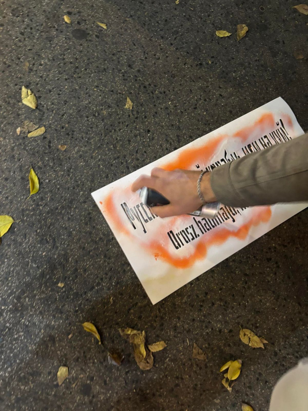 A három "kutya" a Békemenet útvonalán festette fel az útra mesterprovokációs szövegeit, mint például: