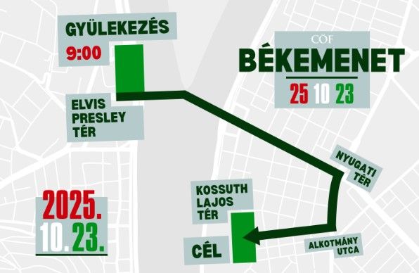 Az október 23-i békemenet gyülekezője kilenc órakor lesz az Elvis Presley téren, ahonnan a Margit hídon, a Nyugati téren és az Alkotmány utcán át vonulnak a Kossuth térre – jelentette be Csizmadia László, a CÖF–CÖKA elnöke.