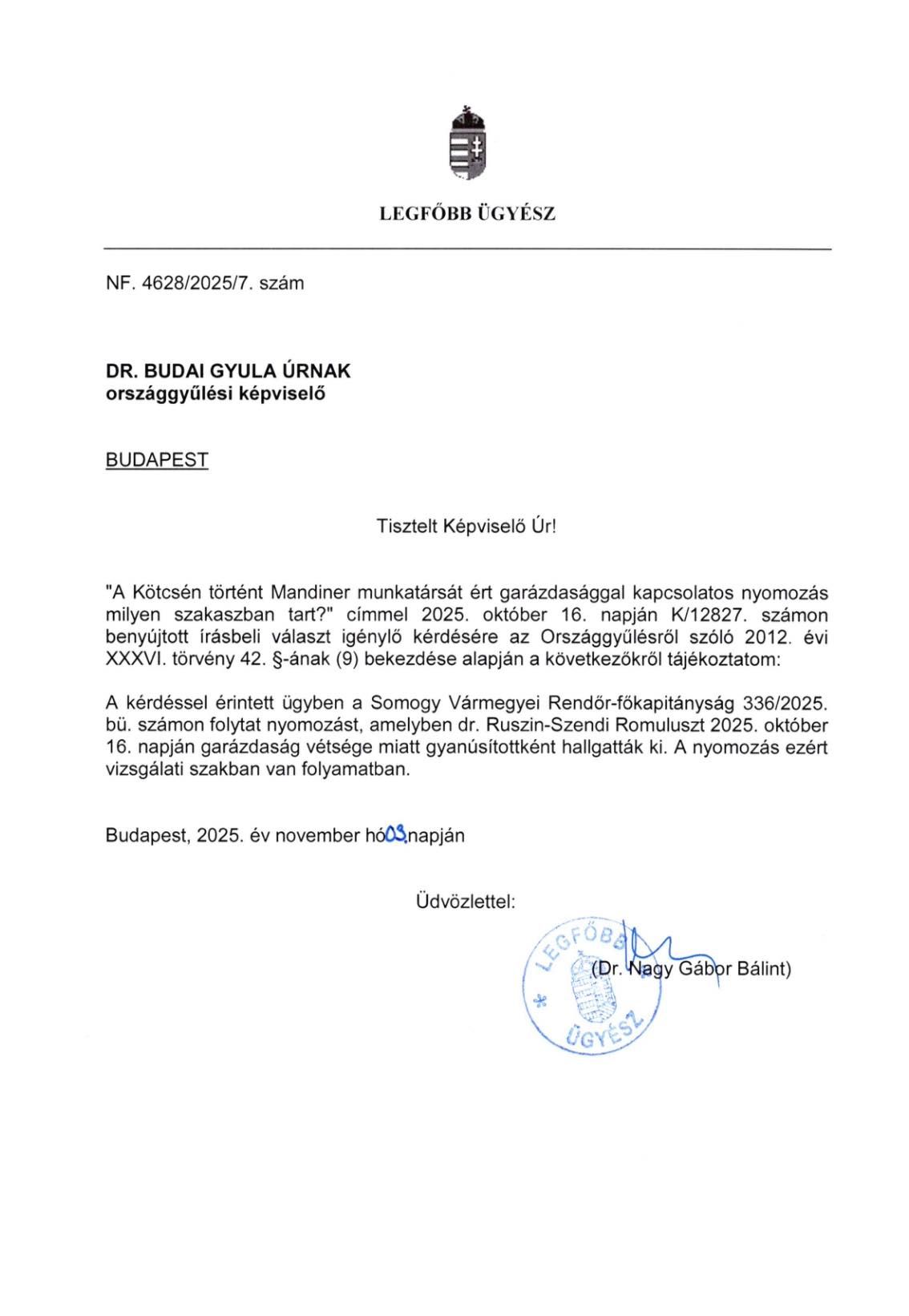 - Legfőbb ügyész (2025.11.03.): gyanú megerősítve