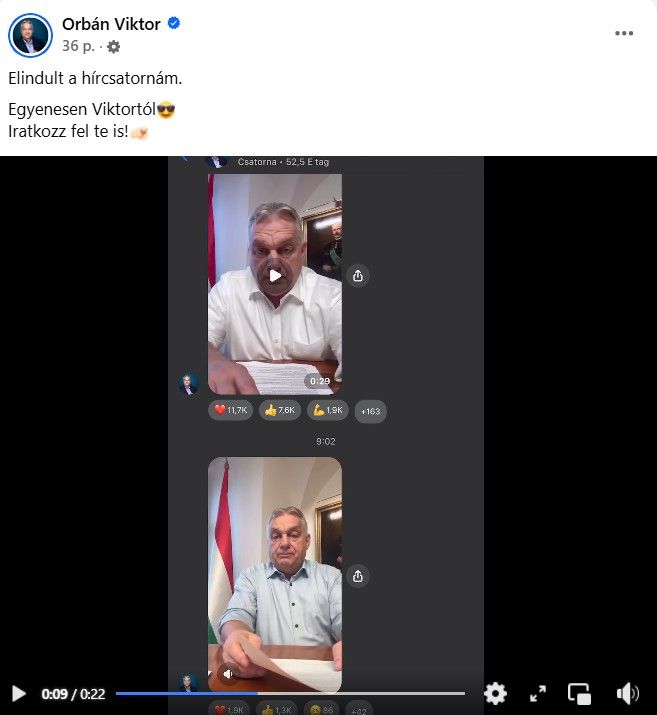 Üzenetében Orbán Viktor arra buzdított mindenkit, hogy aki még nem tette, az iratkozzon fel a hírcsatornára, így egyenesen tőle kaphatják meg a friss tartalmakat.