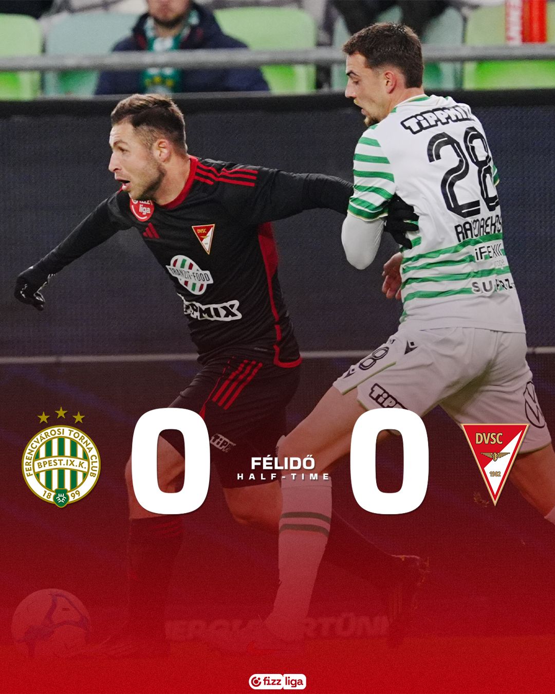 A csütörtöki, újabb Európa Liga-bravúrt követően ismét komoly feladat várt a címvédő Ferencvárosra a labdarúgó NB I 17. fordulójában, ugyanis a kiváló őszt produkáló Debrecen látogatott az Üllői útra. A zöld-fehéreknek azonban a Loki jó formájától függetlenül sem volt félnivalója, mert ők is jó formába lendültek az idény végére. A Fradiban Robbie Keane szinte teljesen kicserélte a középpályát a Rangers elleni találkozóhoz képest, hiszen csak Tóth Alex maradt ott a kezdőben, és elöl is változtatott egyet, Varga Barnabás ékpárja ugyanis ezúttal Joseph volt.