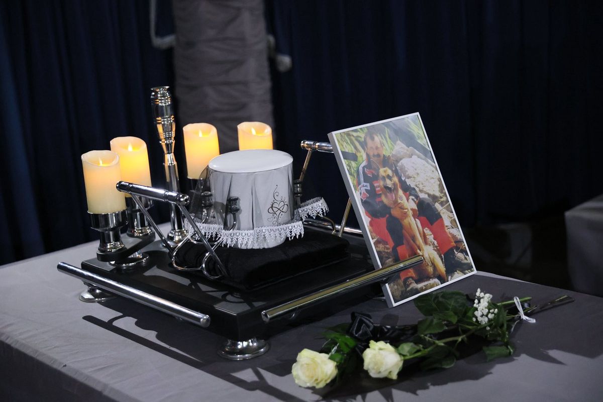 A fotók önmagukért beszélnek: Hope, a mentőkutya nem érti, hova ment a gazdi. Szívszorító pillanatoknak lehettünk ma tanúi Miskolcon, Lehoczki-Spider László temetésén.