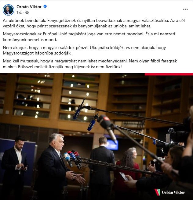 Az ukránok beindultak. Fenyegetőznek és nyíltan beavatkoznak a magyar választásokba. Az a cél vezérli őket, hogy pénzt szerezzenek és benyomuljanak az unióba, amint lehet - írta szombati Facebook-bejegyzésében Orbán Viktor.