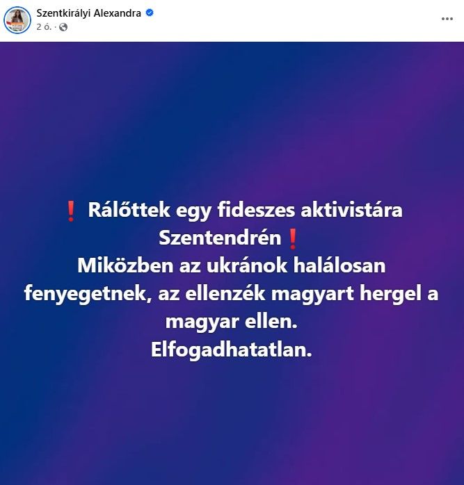 Megdöbbentő és elfogadhatatlan! Fegyverrel lőttek rá Szentendrén az egyik aktivistánkra. Ez a Tiszás gyűlöletkeltés következménye. Ide vezet Magyar Péter, a Tisza Párt és helyi jelöltjeik folyamatos hergelése és gyűlöletkampánya. A politikai erőszaknak nincs helye Magyarországon. Eddig és ne tovább! Kiállunk az aktivistánk mellett és elvárjuk, hogy minden politikai szereplő azonnal hagyjon fel a gyűlöletkeltéssel.
