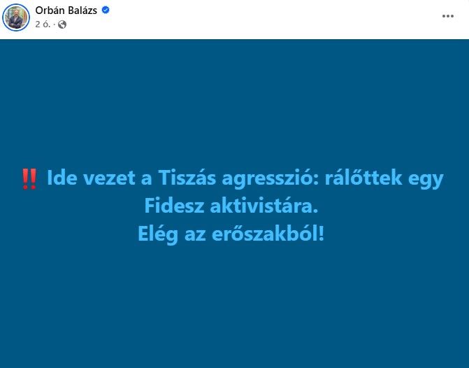 Egy ablakból lőttek rá a Fidesz egyik aktivistájára Szentendrén. Vitályos Eszter kormányszóvivő és Orbán Balázs, a miniszterelnök politikai igazgatója úgy véli, hogy idáig vezetett a Tisza Párt agressziója és gyűlöletkeltése. Az ügyben megszólalt Orbán Viktor is, a miniszterelnök mindenkit nyugalomra intett.