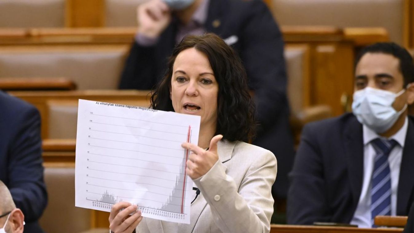 Szabó Tímea kapott szót az Országgyűlés hétfői ülésnapján kora délután, a képviselő azt mondta, Orbán emberek tízezreinek életét akarja beáldozni, mert félti a hatalmát. Azt mondta, hogy még mindig a harmadik legrosszabb halálozási mutatókat produkálja Magyarország európai viszonylatban.