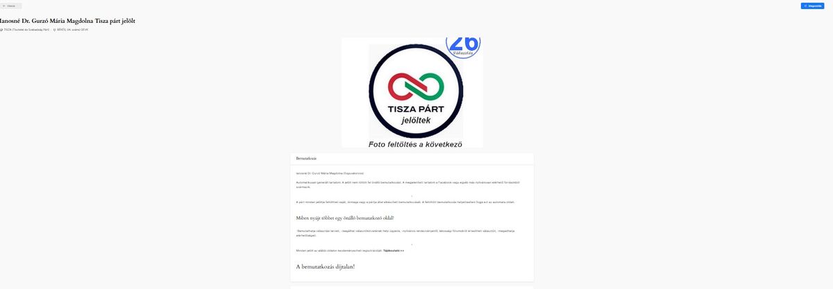 Békés vármegye 04-es választókerületében mérettetné meg magát a tavasszal Ianosné Dr. Gurzó Mária Magdolna a Tisza színeiben, a fogorvosként dolgozó hölgy az Országos Román Önkormányzat képviselőjeként tavaly még arról beszélt, hogy számára a románság érdeke mindenek felett áll. Igaz, kijelentésekor még nem volt biztos az sem, hogy Bütyököt menesztik a NER-ből, ahogy az sem, hogy az addig kitartott közpénz-here szabadságharcosként lép fel, mert kirakták néhány felügyelőbizottságból. Feltételezhető, hogy Ianosné számára jelenleg mindenek felett állók a román érdekek, bár a Tisza jelölt-jelöltjeinek kezdetben csetlő-botló bemutatkozása mostanára profi alkalmazássá izmosodott, amiből majdnem mindent megtudhatnak az érdeklődők. Ianosné bemutatkozásának 2025.114.24-i állapota: