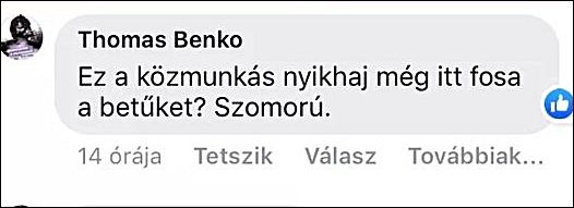 „Ez a közmunkás nyikhaj még itt fosa a betűket? Szomorú.”