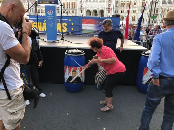 Mielőtt azonban a rendőrségig szaladna árulkodni, valamire azért fölhívnám e nagy „hazaffy” figyelmét. Az a bábu, ami ott lógott-lógászkodott a józsefvárosi estében, nem Ujhelyi Istvánként látta meg a napvilágot a magyar Dzsepettó műhelyében, hanem Orbán Viktorként. Még a miniszterelnök fotója feszült a bábu arcán, mikor a minapi Sargentini-diadalmeneteken az ellenzéki tüntetők ütötték, rúgták, harapták. E jeles eseményeken Ujhelyi is ott vala, tán maga is vuduzott egyet az Orbán-bábuval, megpöködte kissé, ki tudja. Az viszont biztos, hogy a miniszterelnök kicsinyített mását ért atrocitások nem érték el Ujhelyi ingerküszöbét, nem adott ki miattuk közleményt, Facebook-dörgedelmet, hogy „Eddig és ne tovább!”, nem sietett a rendőrségre följelentést tenni.